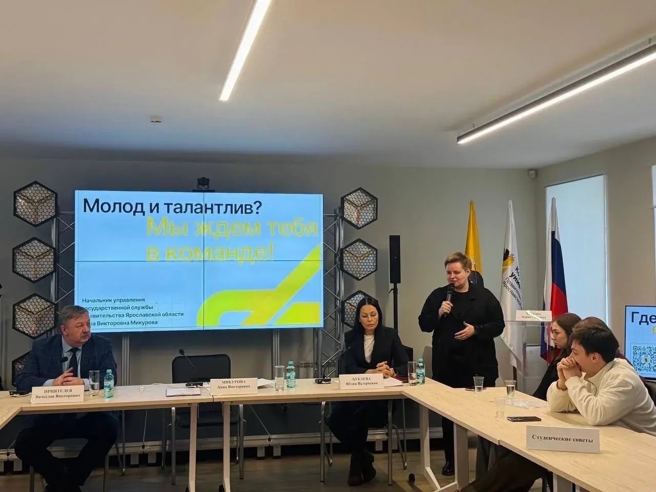 В Корпоративном университете Правительства Ярославской области состоялась встреча начальника управления государственной службы региона Анны Микуровой с руководителями центров карьеры, членами «Союза студентов» и представителями студенческих советов вузов. Мероприятие было направлено на развитие кадрового потенциала области и популяризацию государственной и муниципальной службы среди молодёжи.