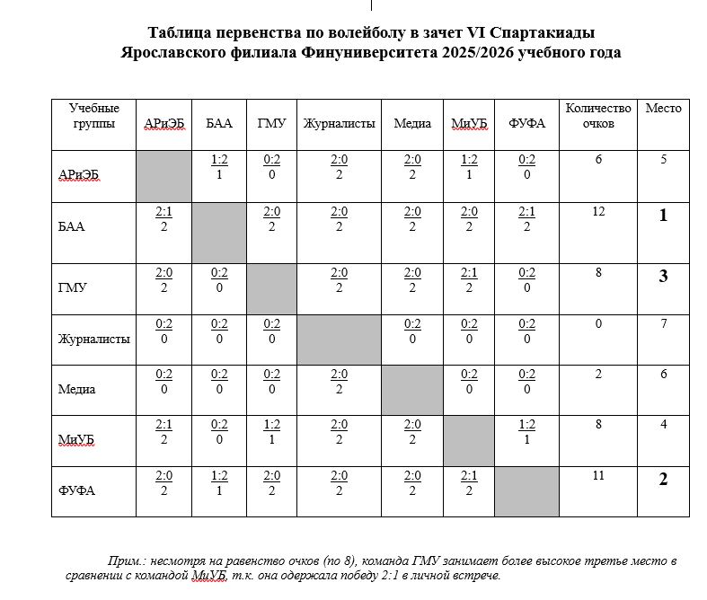 - 1-е место группа БАиА;